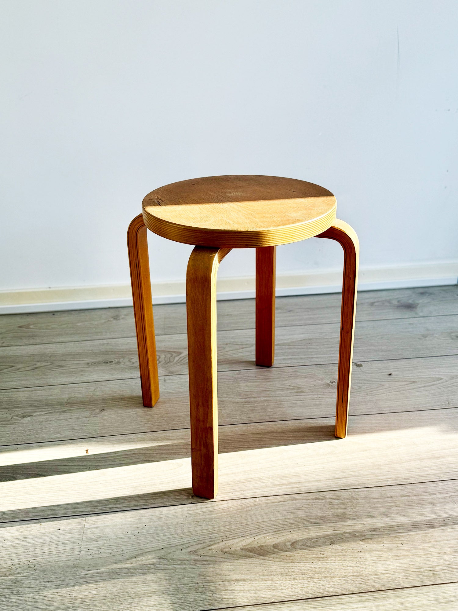 Vintage birch wood (bentwood) stacking stool in the style of Alvar Aalto Model E60, Finland, 1930-1960s